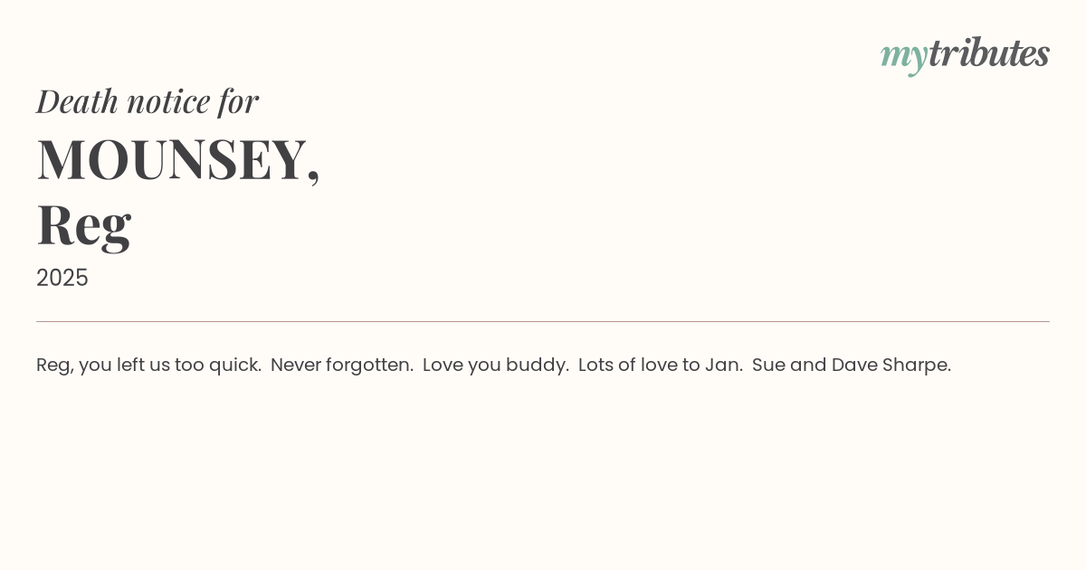 Reg, you left us too quick.