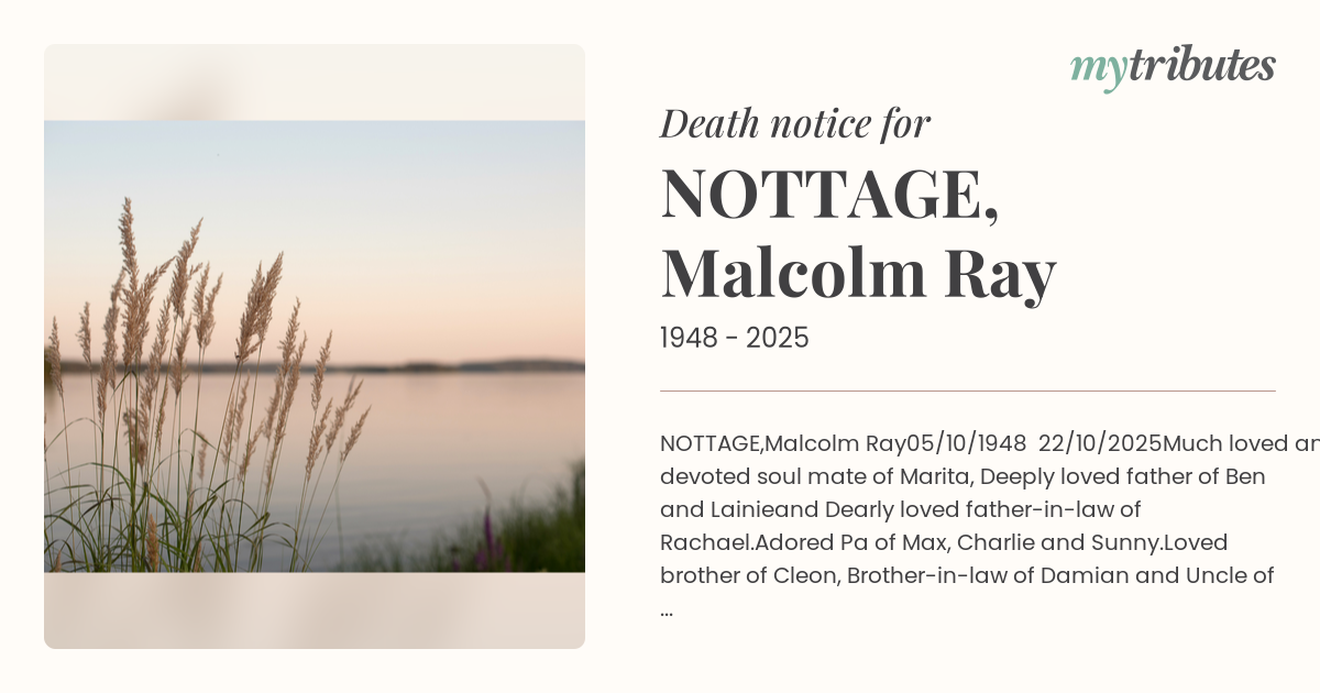 Much loved and devoted soul mate of Marita, Deeply loved father of Ben and Lainie