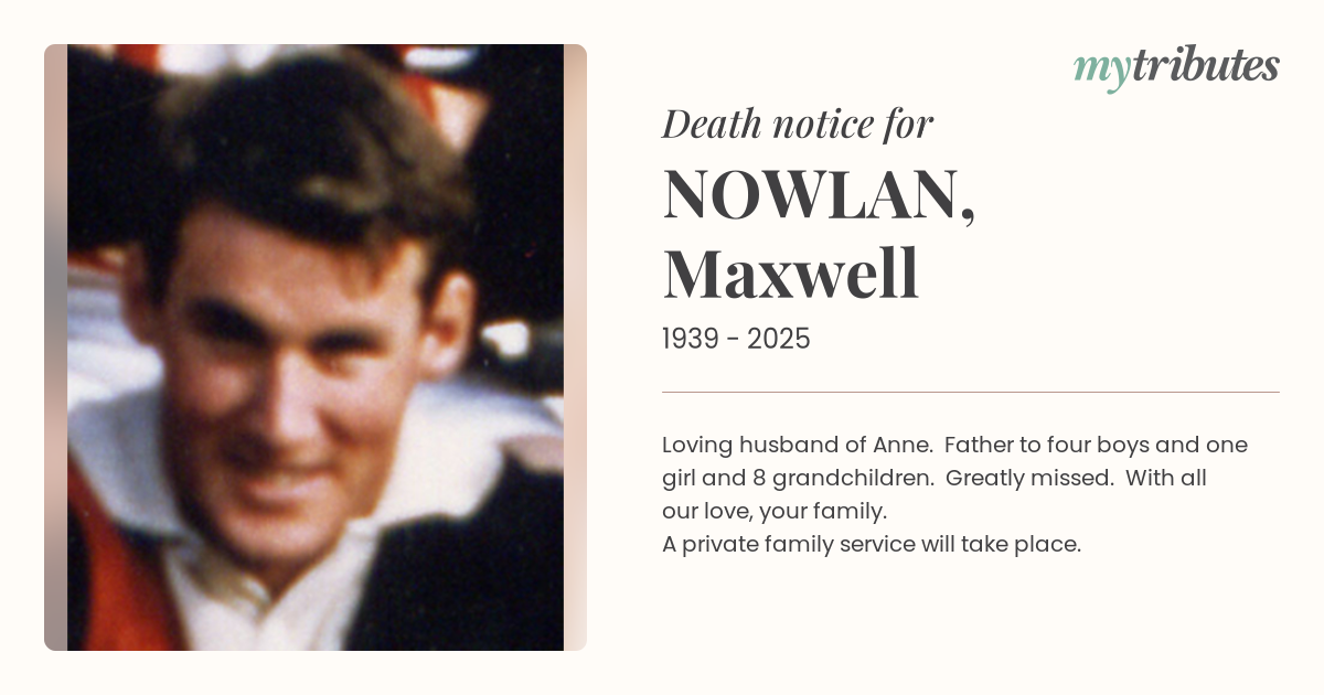 Loving husband of Anne. Father to four boys and one girl and 8 grandchildren. Greatly missed. With all our love, your family.