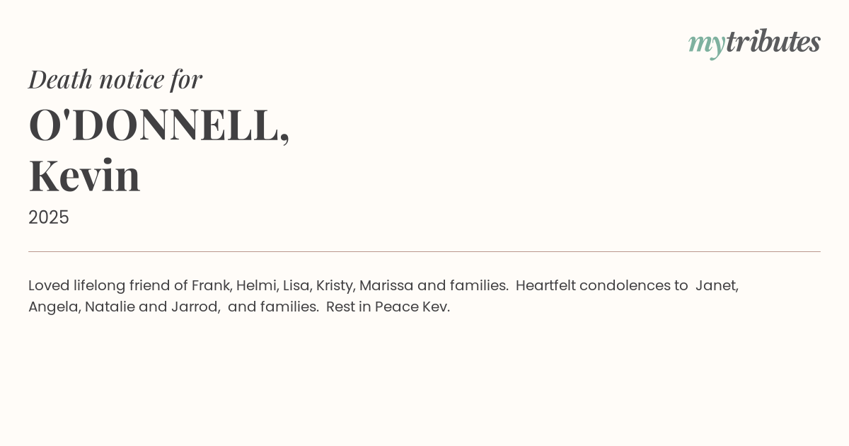 Heartfelt condolences to Janet, Angela, Natalie and Jarrod, and families.