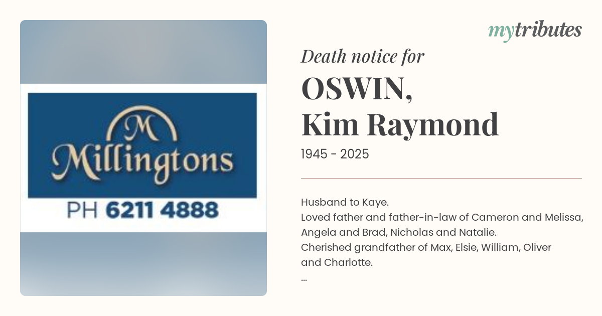 Cherished grandfather of Max, Elsie, William, Oliver and Charlotte.