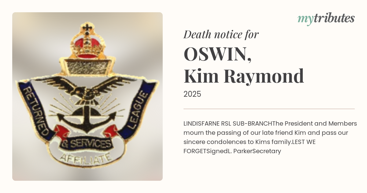The President and Members mourn the passing of our late friend Kim and pass our sincere condolences to Kim’s family.