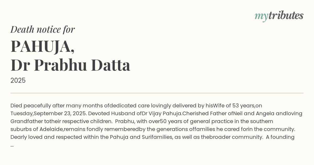 Dearly loved and respected within the Pahuja and Suri