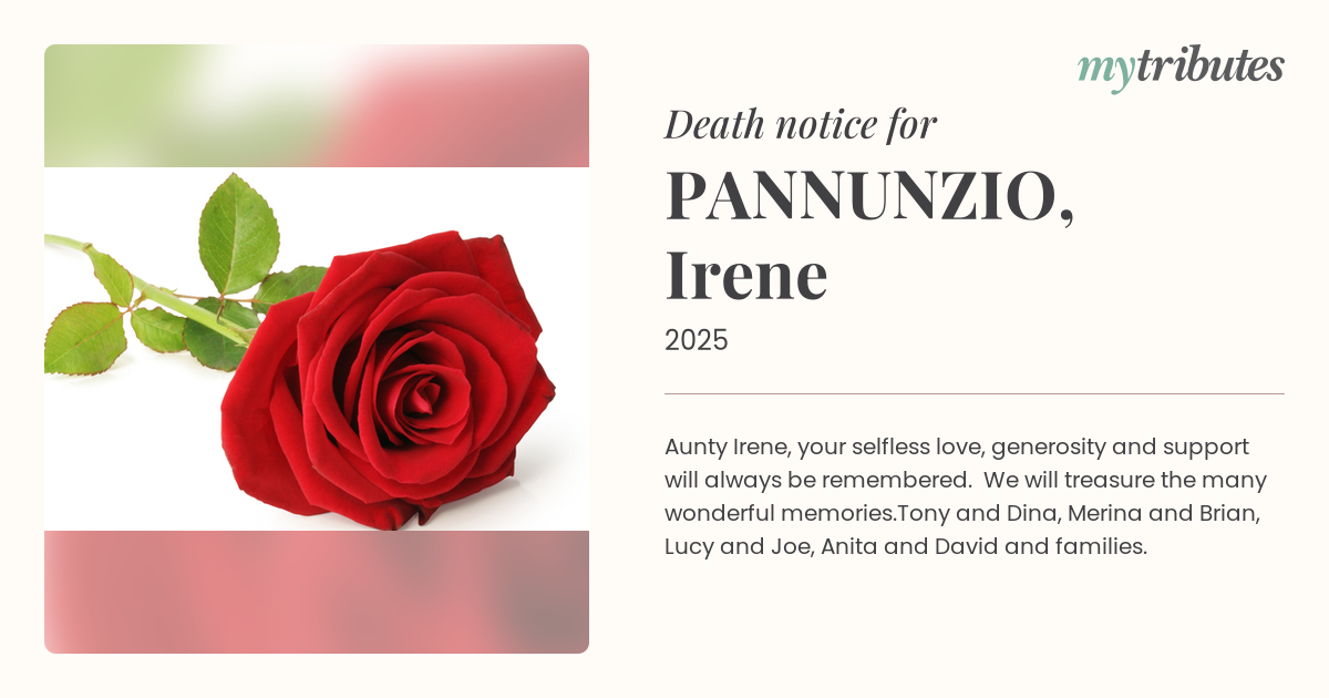 Aunty Irene, your selfless love, generosity and support will always be remembered.