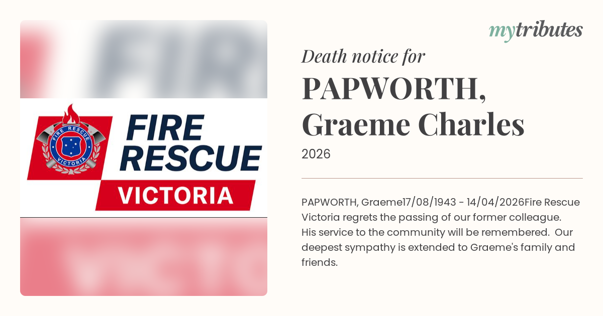 Fire Rescue Victoria regrets the passing of our former colleague. His service to the community will be remembered. Our deepest sympathy is extended to Graeme's family and friends.