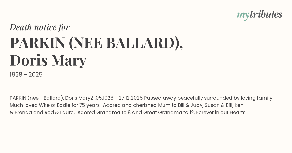 PARKIN (nee ~ Ballard), Doris Mary