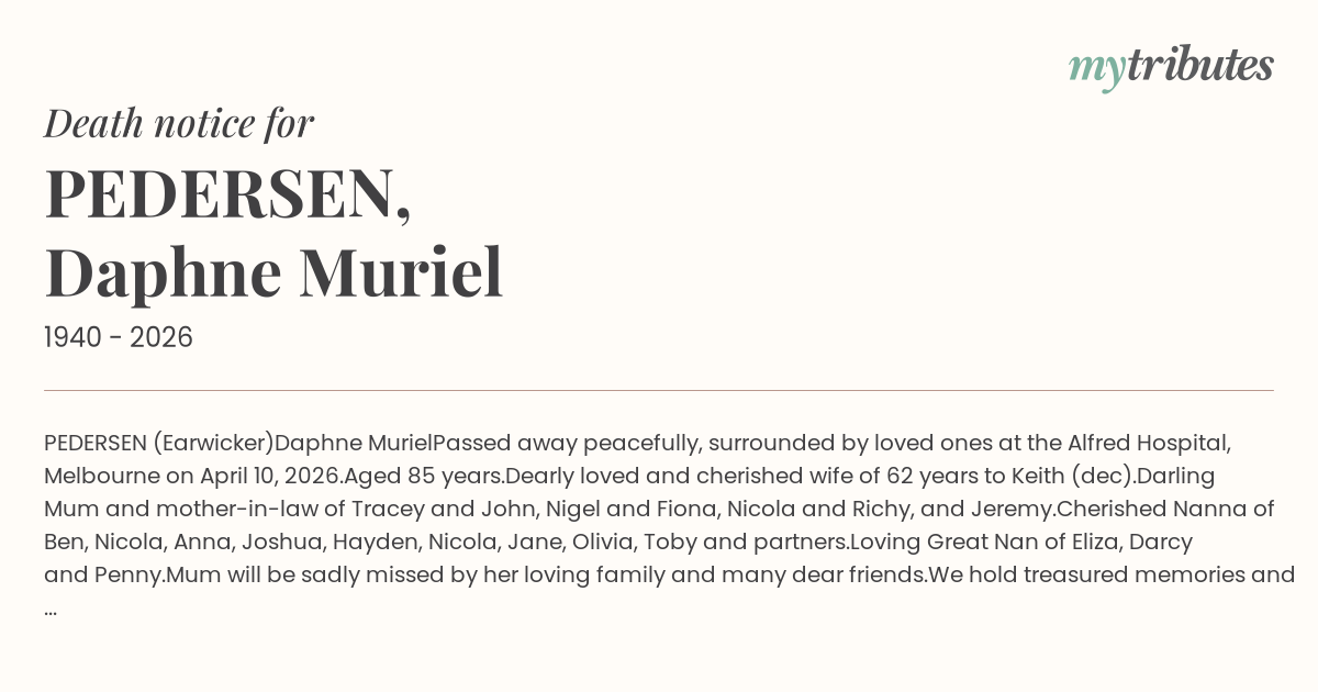 In accordance with Daphne’s wishes a Private Family Funeral Service will be held.