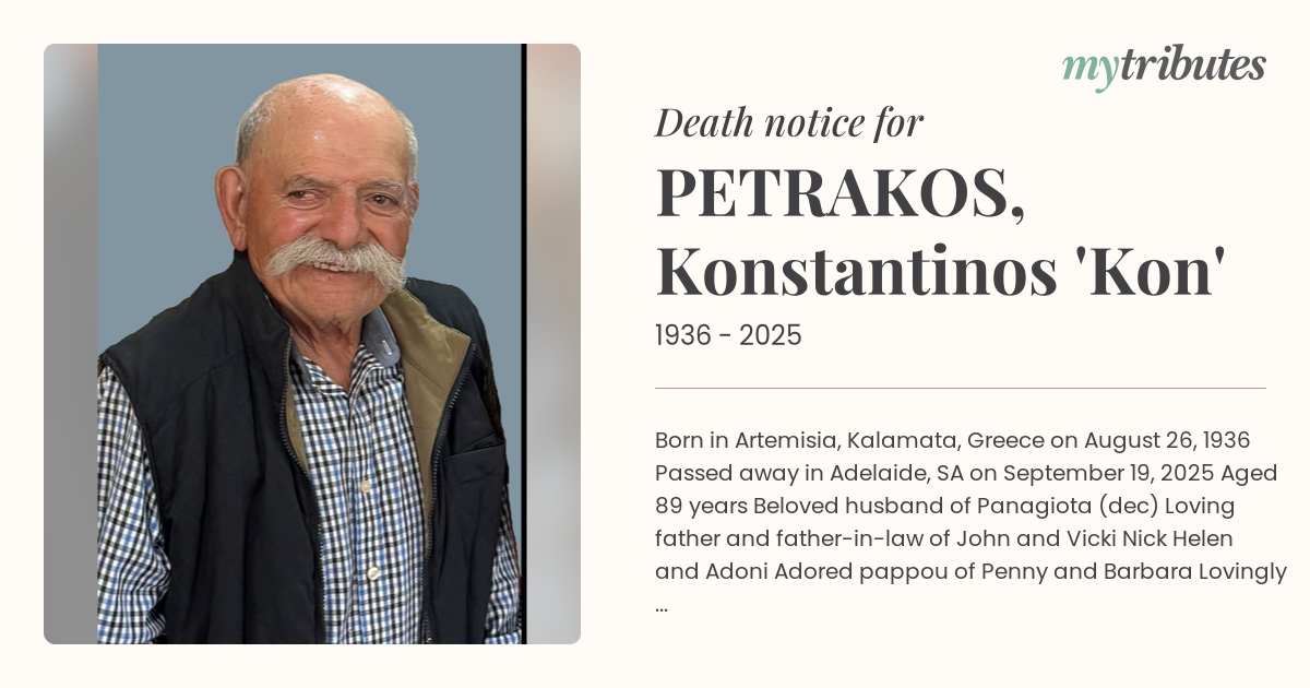 Born in Artemisia, Kalamata, Greece on August 26, 1936