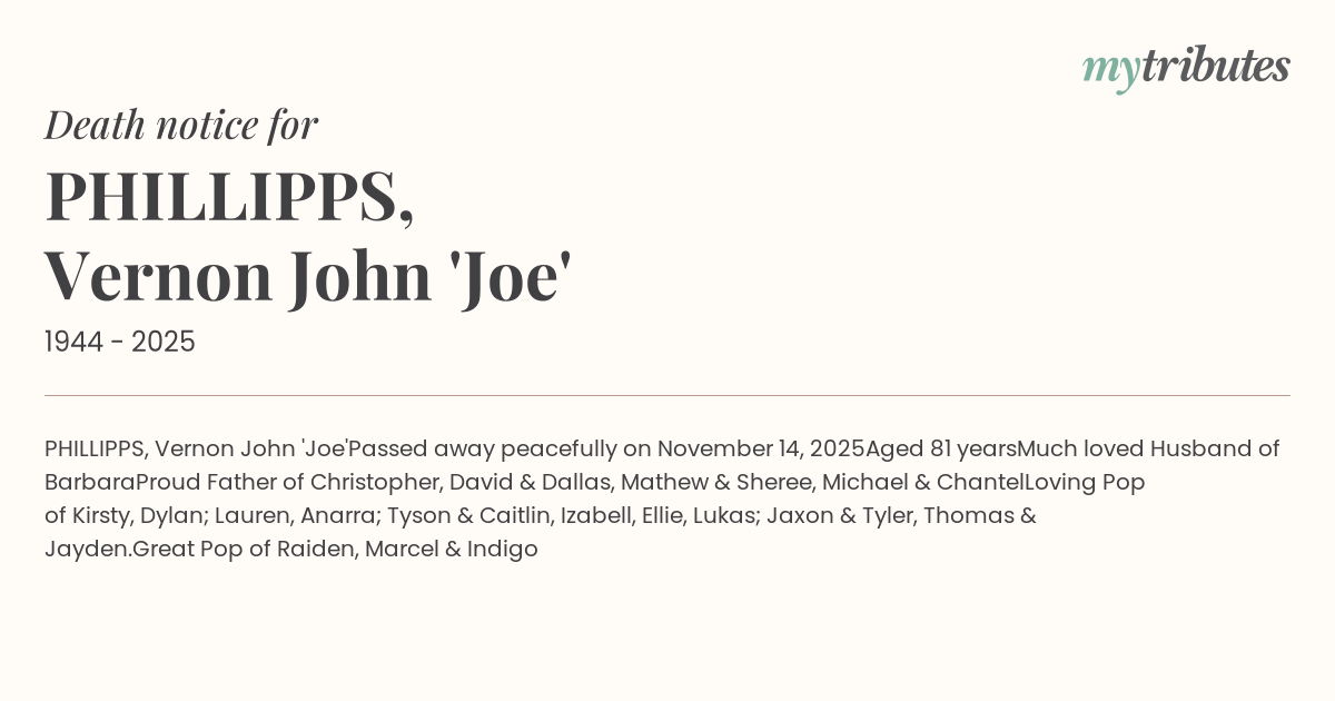 PHILLIPPS, Vernon John 'Joe'