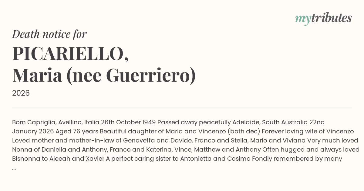 Beautiful daughter of Maria and Vincenzo (both dec)