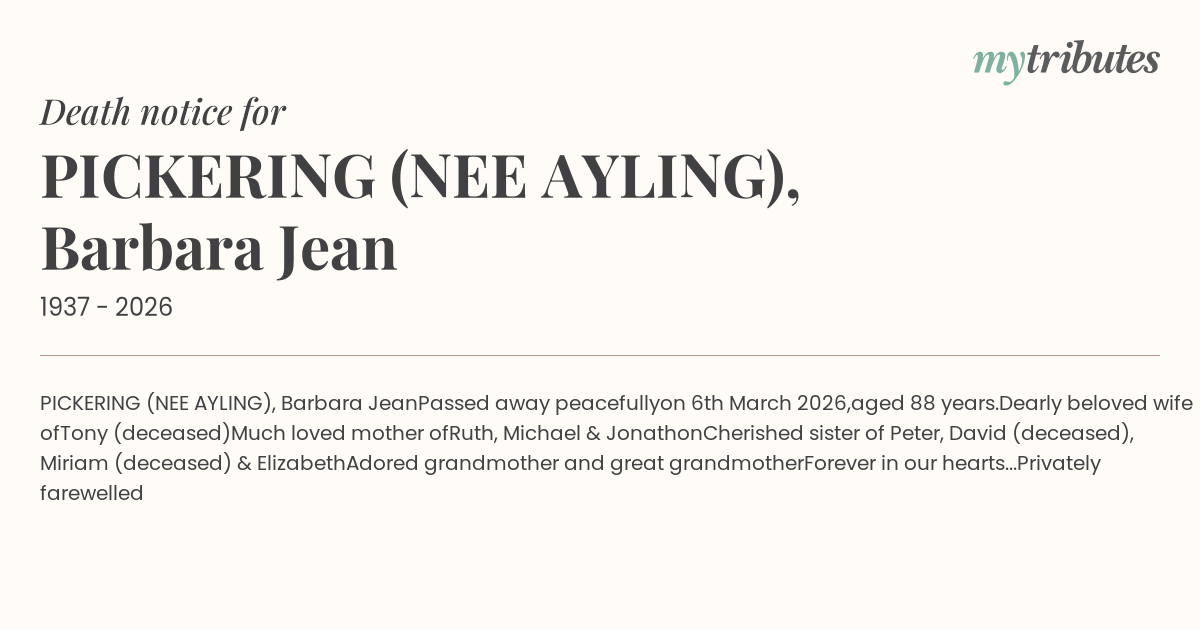 PICKERING (NEE AYLING), Barbara Jean