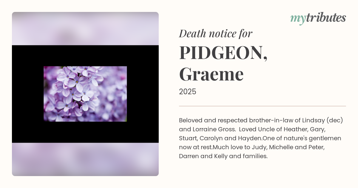 Beloved and respected brother-in-law of Lindsay (dec) and Lorraine Gross. Loved Uncle of Heather, Gary, Stuart, Carolyn and Hayden.