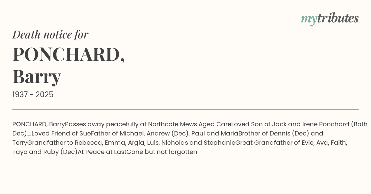 Loved Son of Jack and Irene Ponchard (Both Dec)_