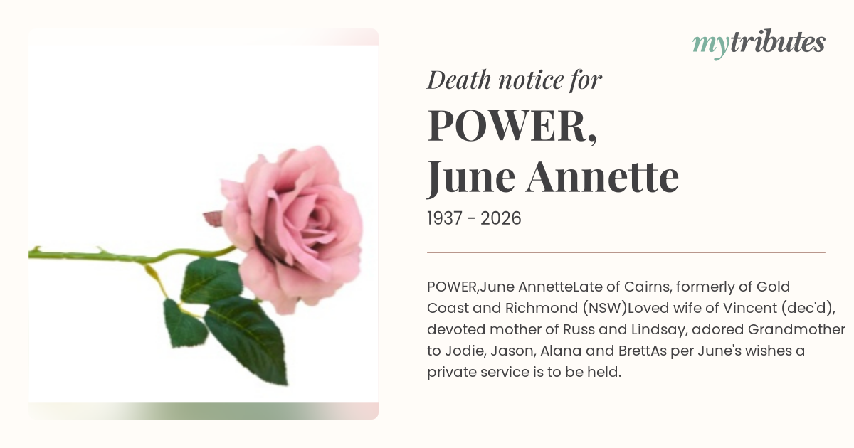 Late of Cairns, formerly of Gold Coast and Richmond (NSW)