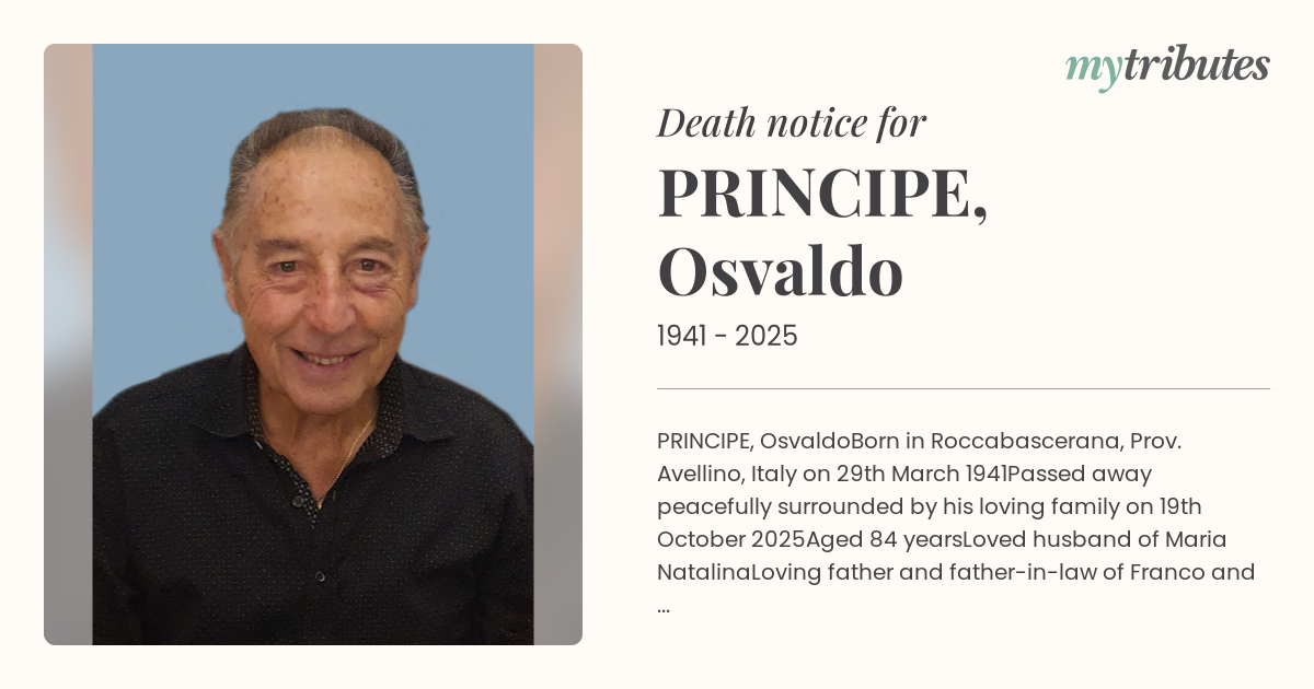 Passed away peacefully surrounded by his loving family on 19th October 2025
