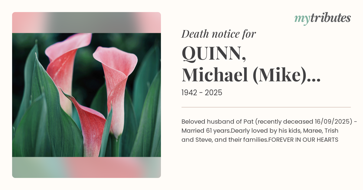 Beloved husband of Pat (recently deceased 16/09/2025) - Married 61 years.