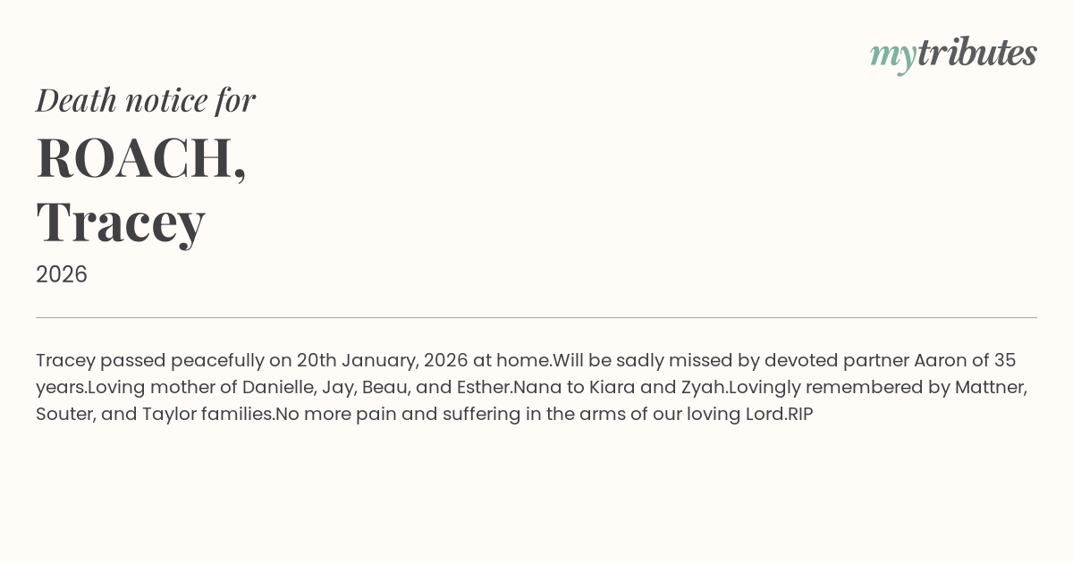 Loving mother of Danielle, Jay, Beau, and Esther.
