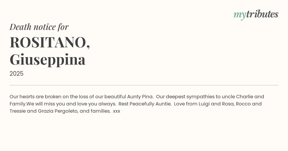 Our hearts are broken on the loss of our beautiful Aunty Pina.