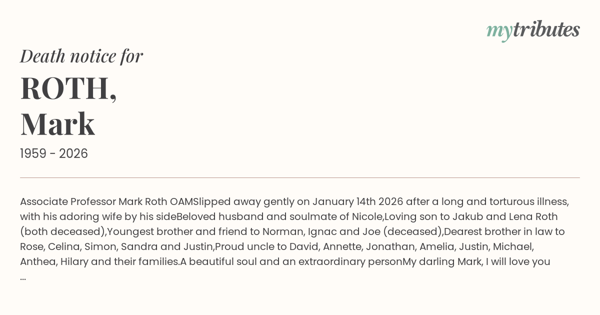 For memorial service details, please visit https://jewishfunerals.org.au/funerals/funeral-information/?fn_id=2019