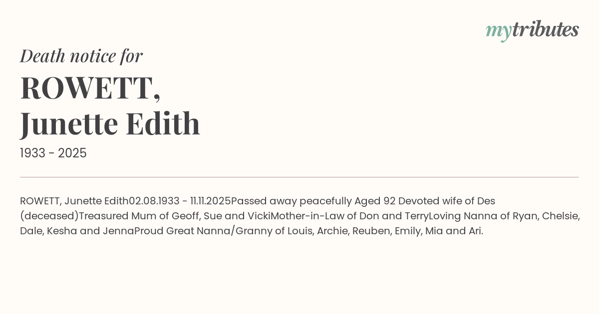 ROWETT, Junette Edith