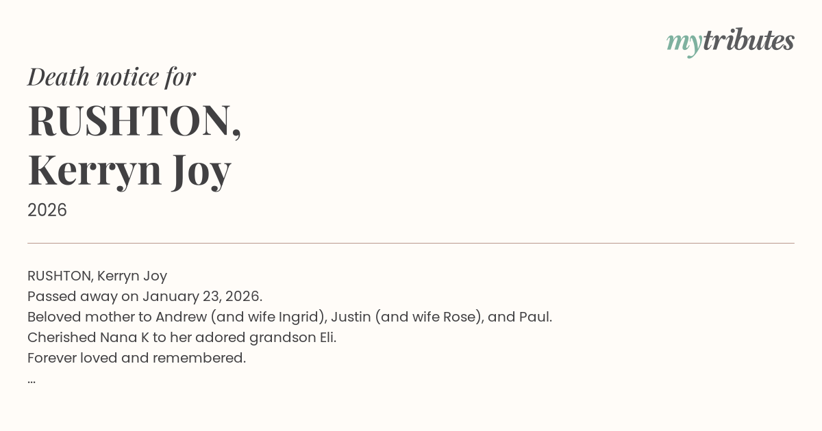 A private funeral will be held in accordance with Kerryn’s wishes.