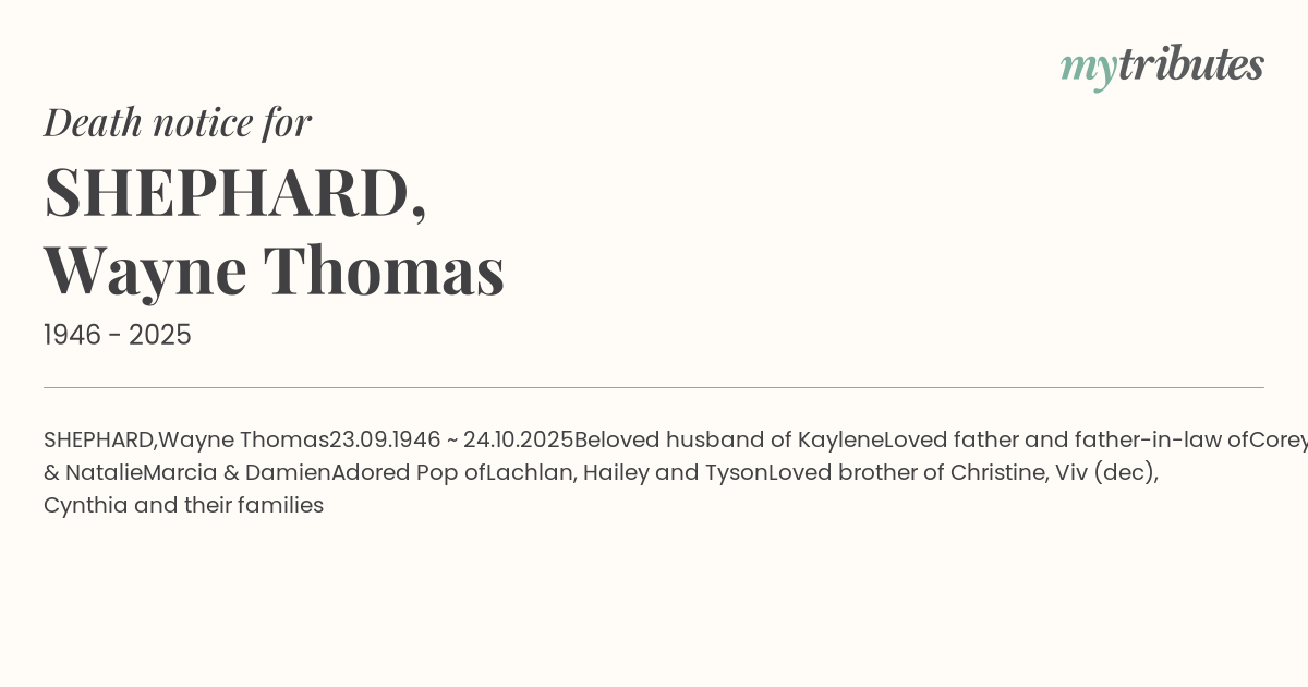 Loved brother of Christine, Viv (dec), Cynthia and their families