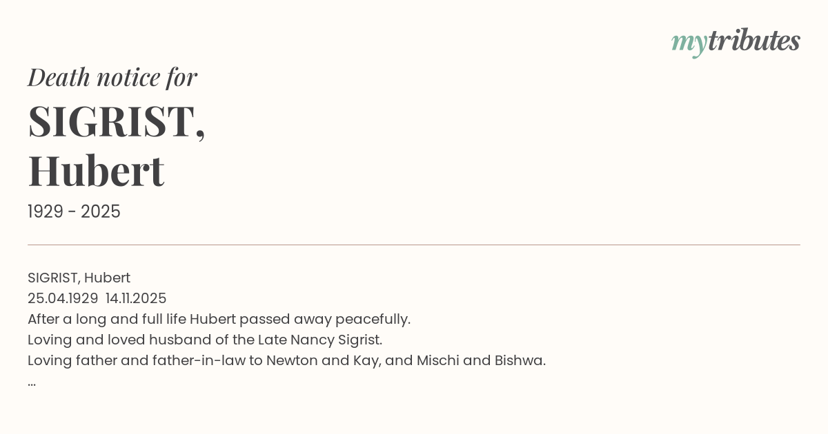 Hubie will be dearly missed by Elise and Lincoln, his grandchildren.
