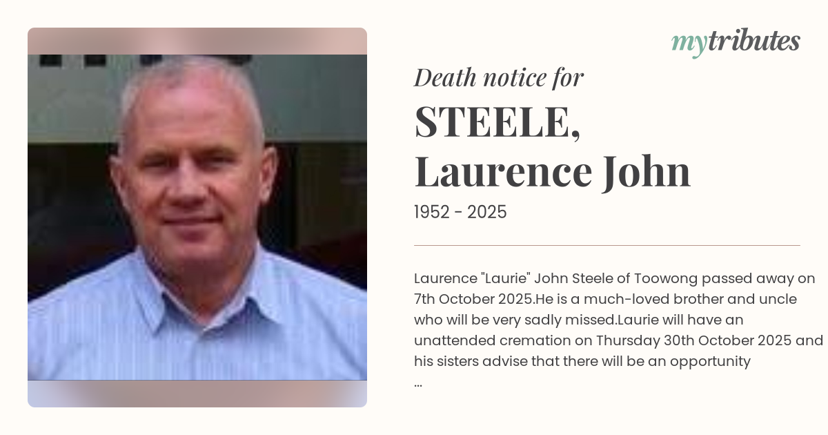 Laurence "Laurie" John Steele of Toowong passed away on 7th October 2025.