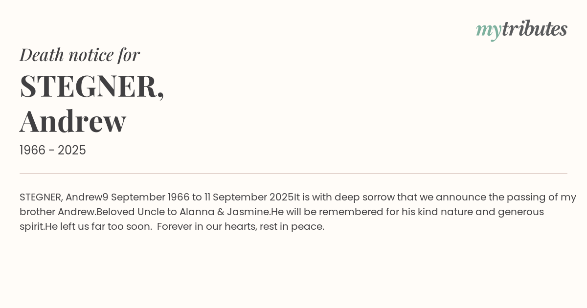 It is with deep sorrow that we announce the passing of my brother Andrew.