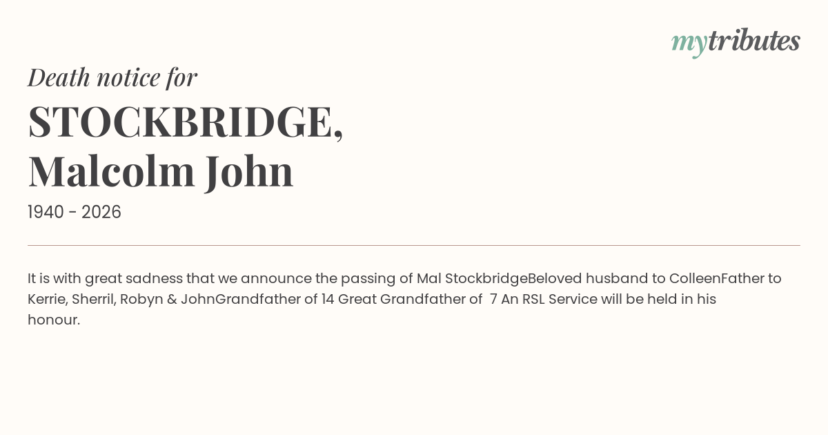 It is with great sadness that we announce the passing of Mal Stockbridge