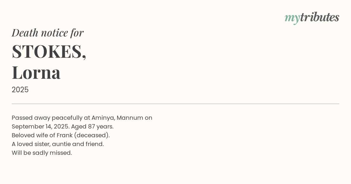 Passed away peacefully at Aminya, Mannum on