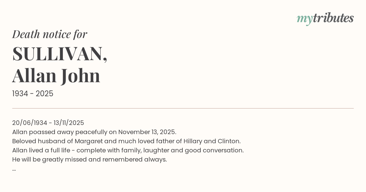 Beloved husband of Margaret and much loved father of Hillary and Clinton.
