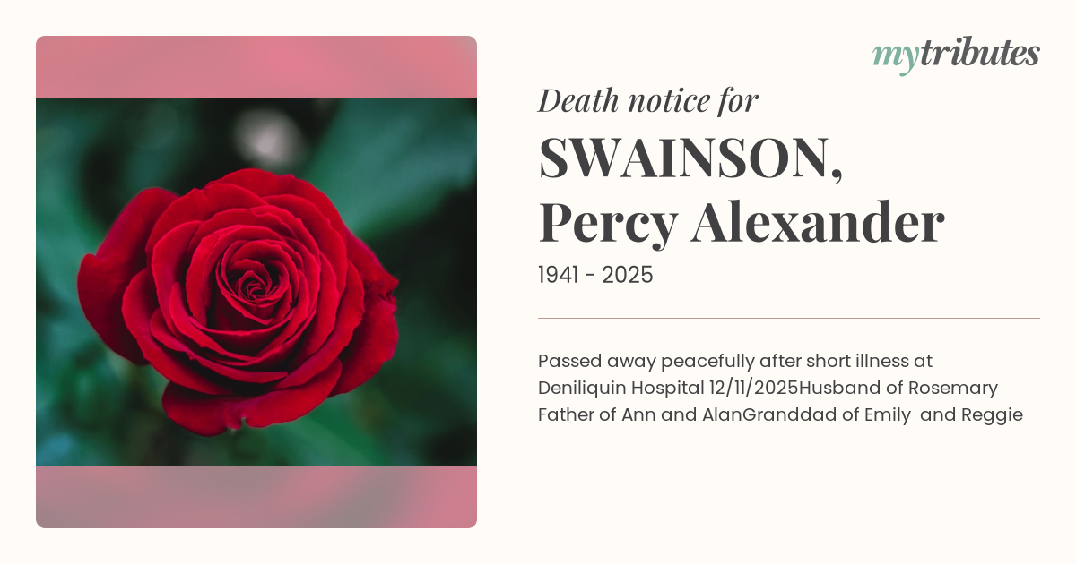 Passed away peacefully after short illness at Deniliquin Hospital 12/11/2025