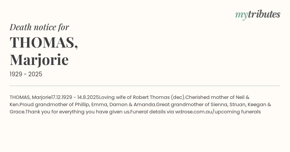 Funeral details via wdrose.com.au