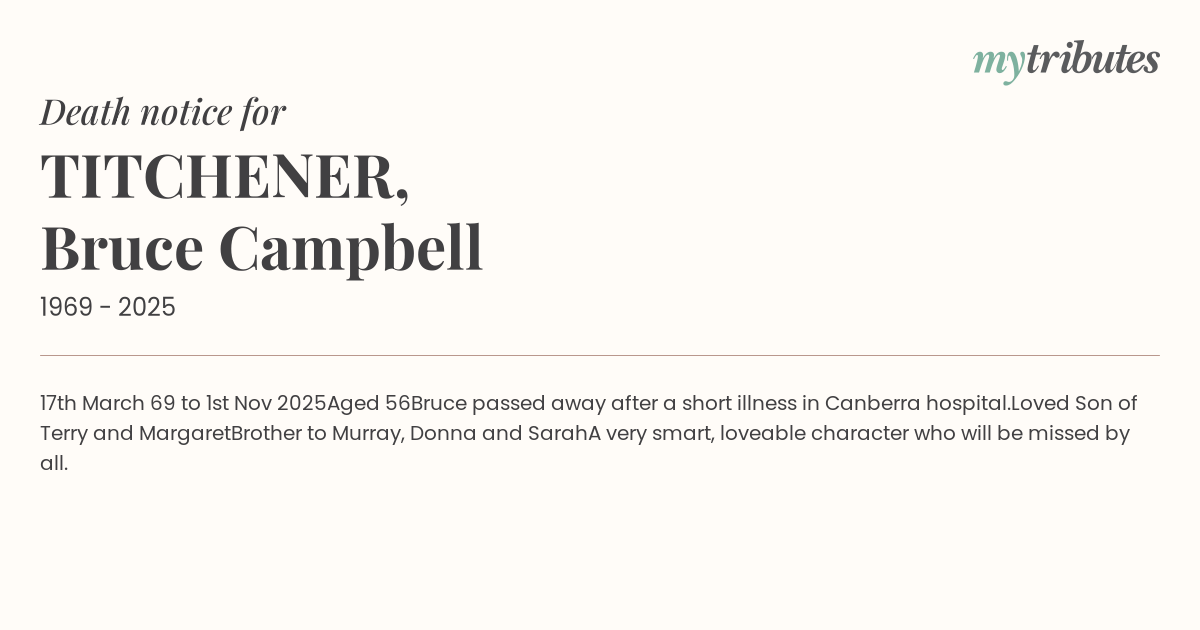 Bruce passed away after a short illness in Canberra hospital.