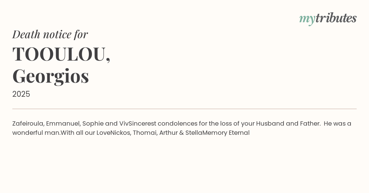 Sincerest condolences for the loss of your Husband and Father. He was a wonderful man.