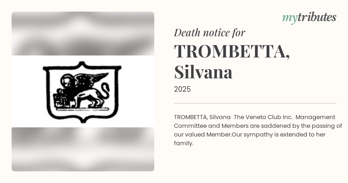 The Veneto Club Inc. Management Committee and Members are saddened by the passing of
