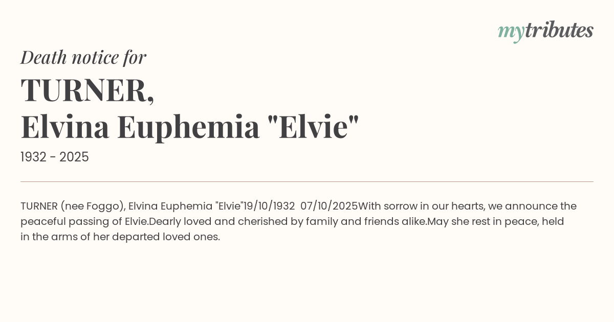 TURNER (nee Foggo), Elvina Euphemia "Elvie"