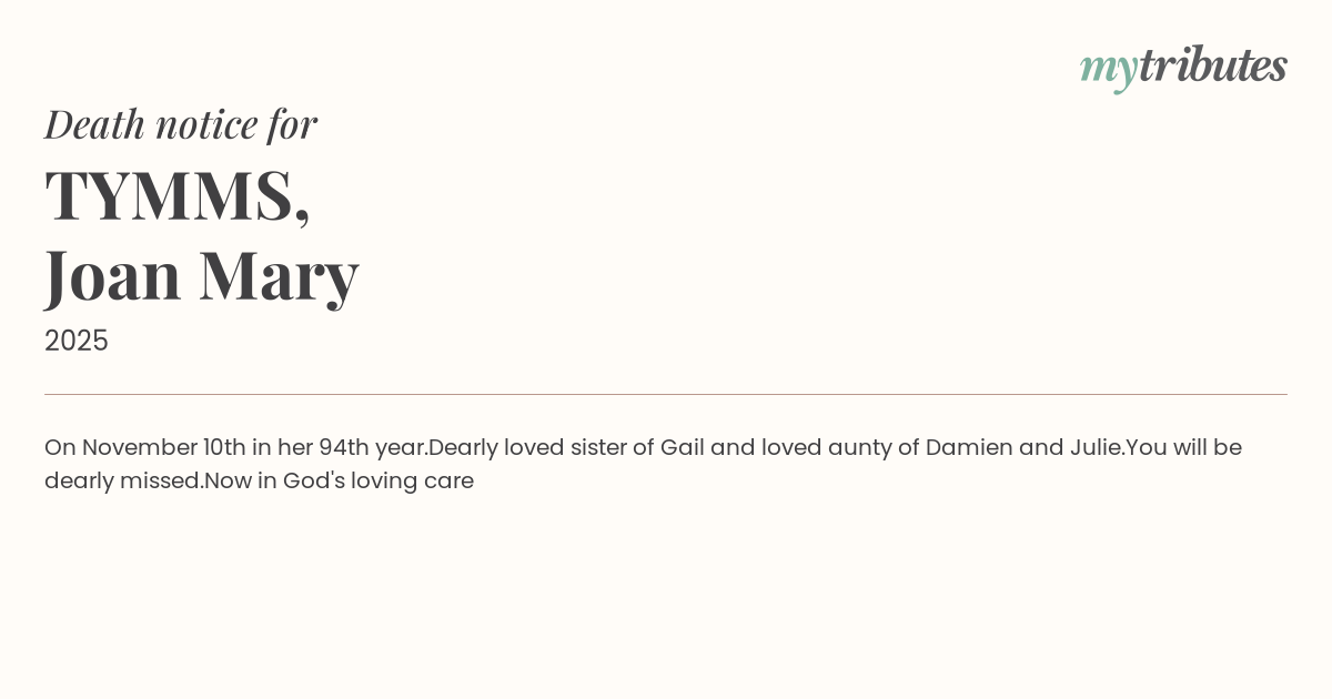On November 10th in her 94th year.