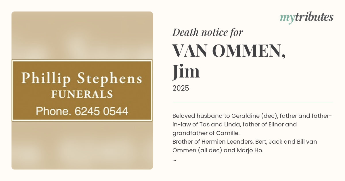 Brother of Hermien Leenders, Bert, Jack and Bill van Ommen (all dec) and Marjo Ho.