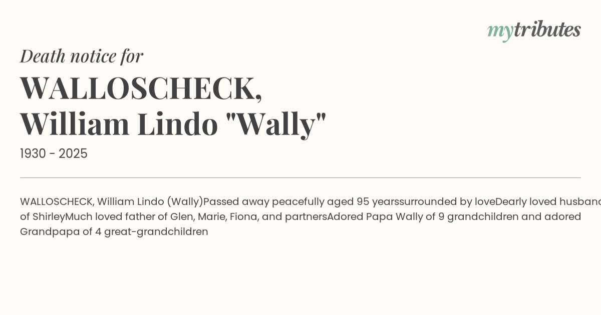 WALLOSCHECK, William Lindo (Wally)