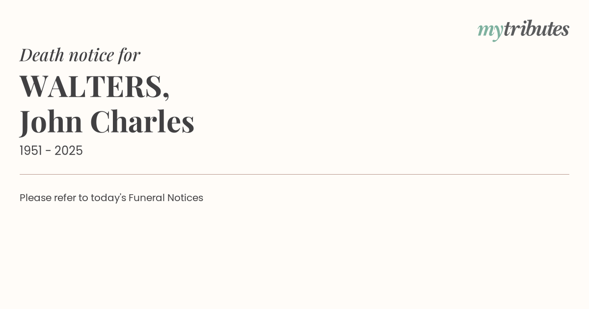 Please refer to today's Funeral Notices