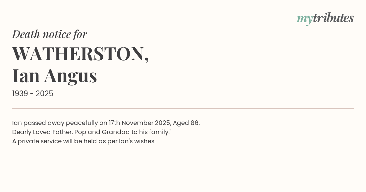 A private service will be held as per Ian's wishes.