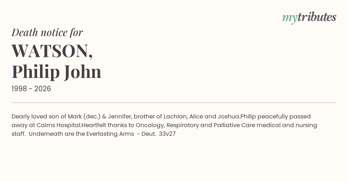 Philip peacefully passed away at Cairns Hospital.