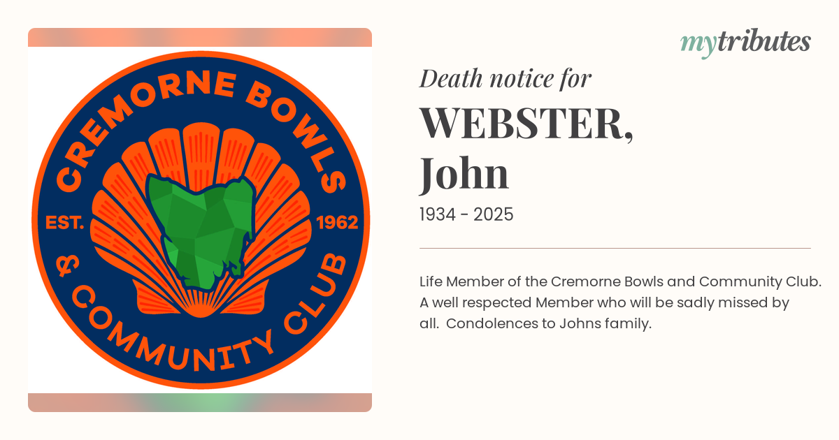 Life Member of the Cremorne Bowls and Community Club. A well respected Member who will be sadly missed by all. Condolences to John’s family.