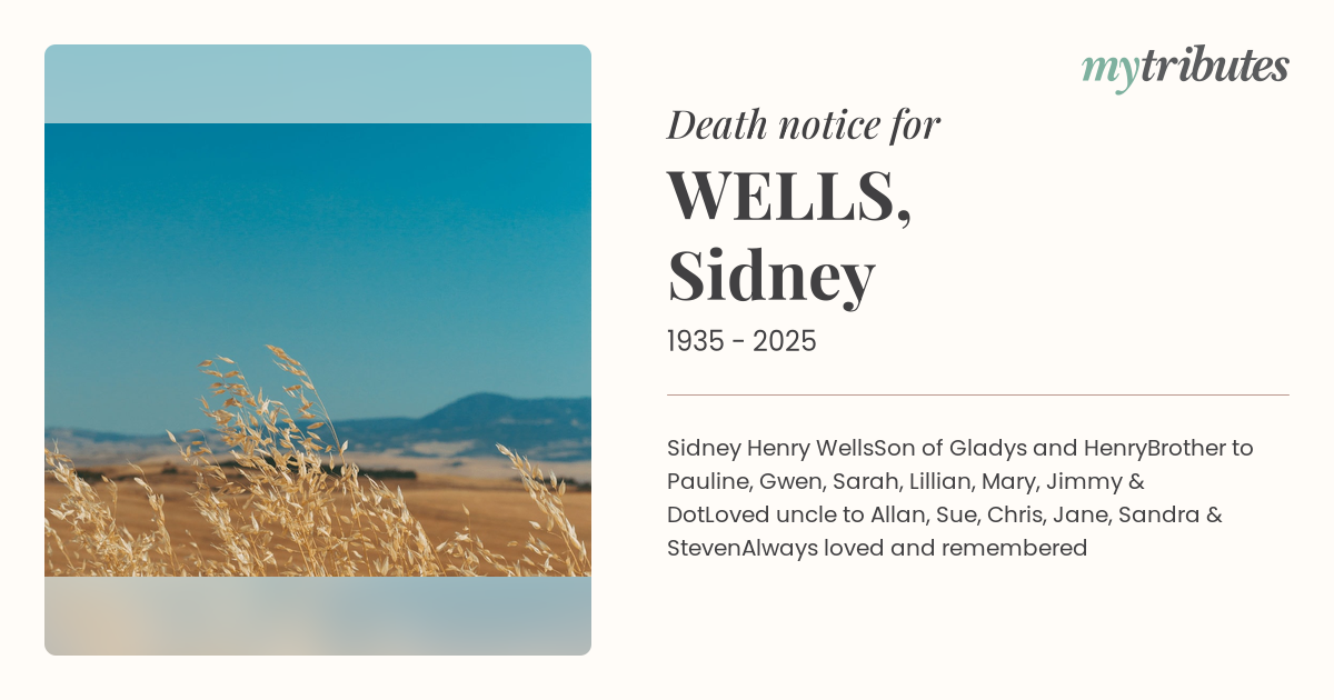 Loved uncle to Allan, Sue, Chris, Jane, Sandra & Steven