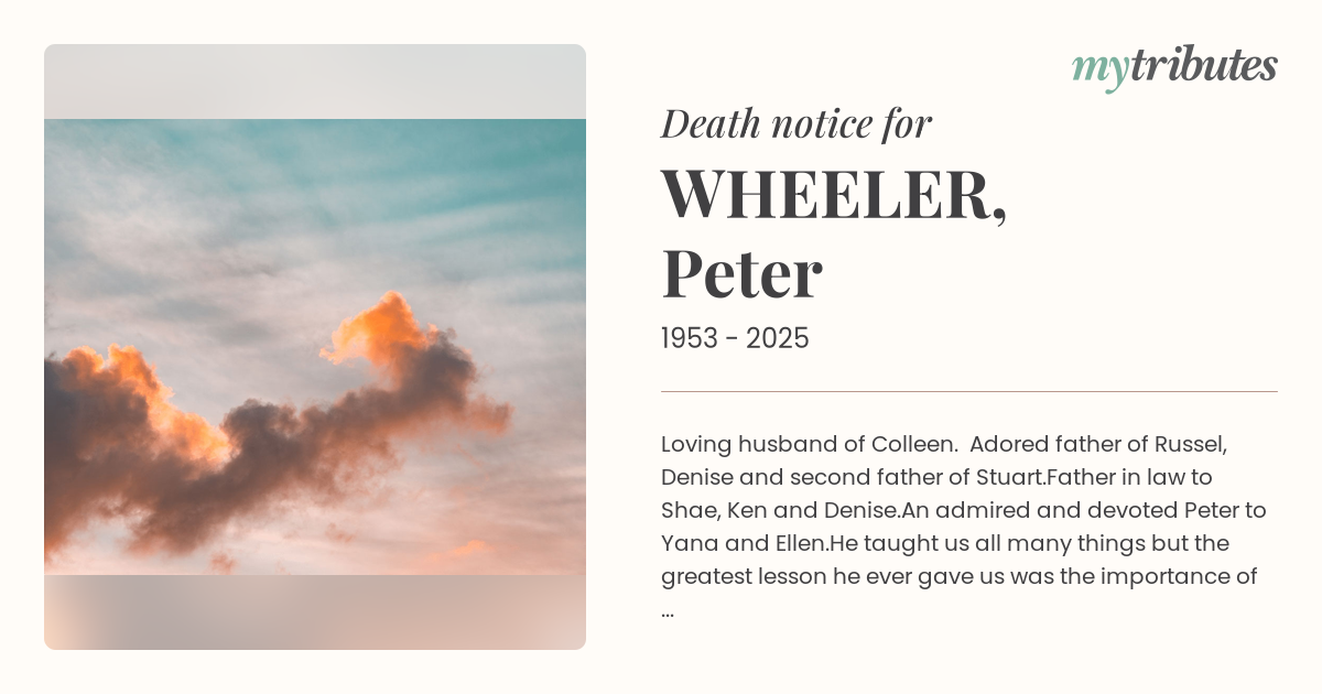 Adored father of Russel, Denise and second father of Stuart.