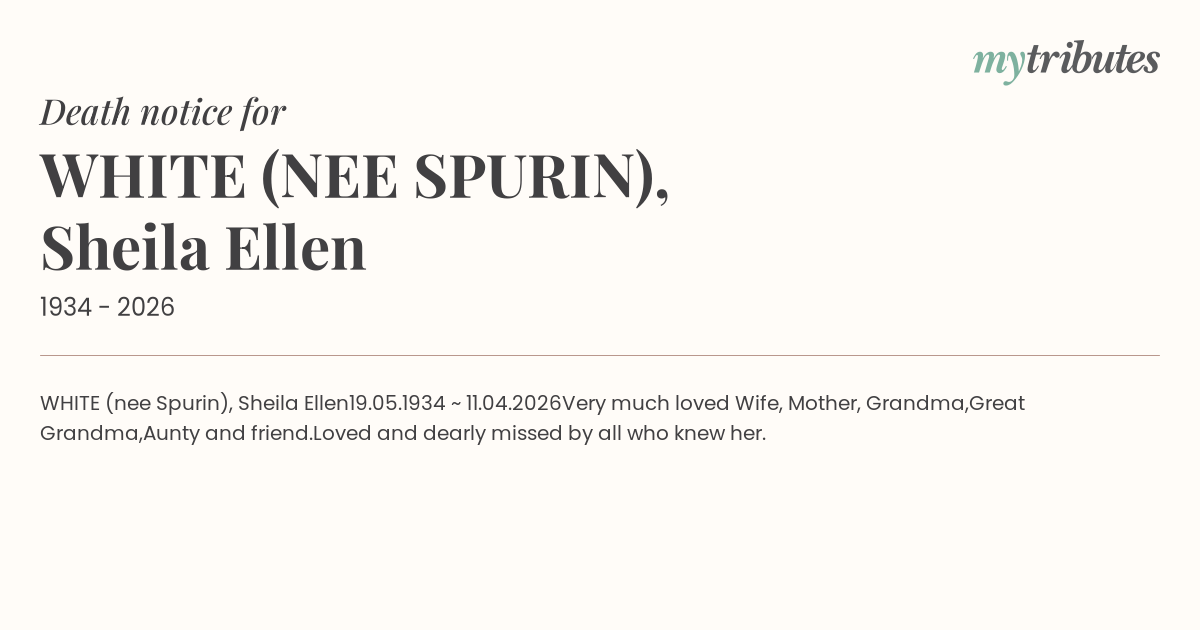 WHITE (nee Spurin), Sheila Ellen