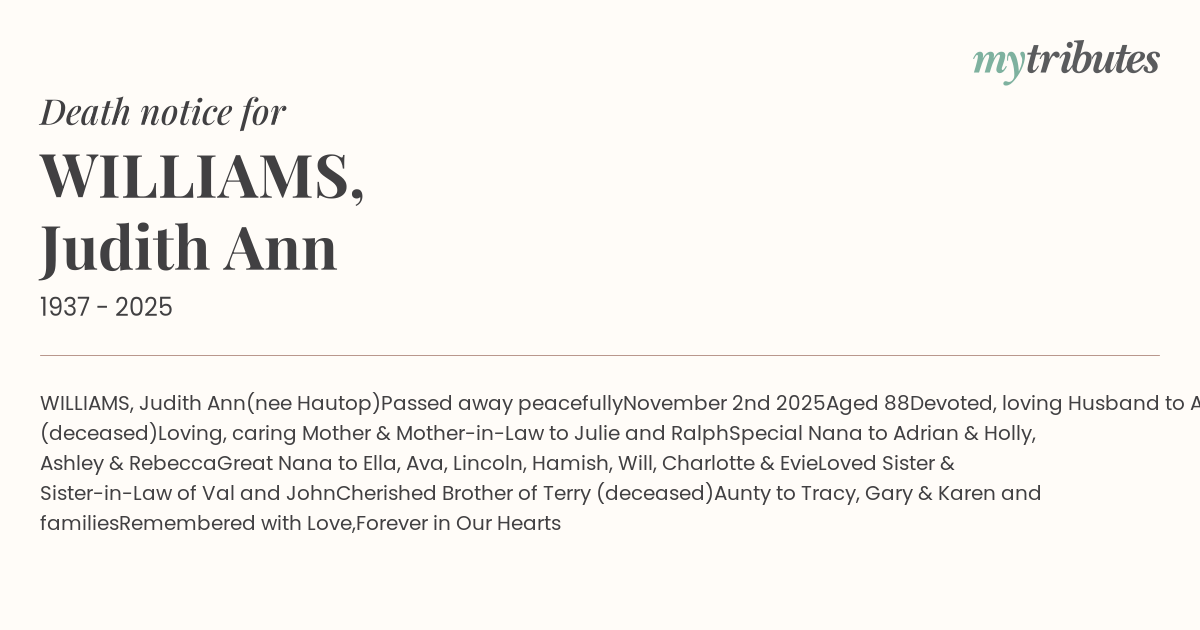 WILLIAMS, Judith Ann