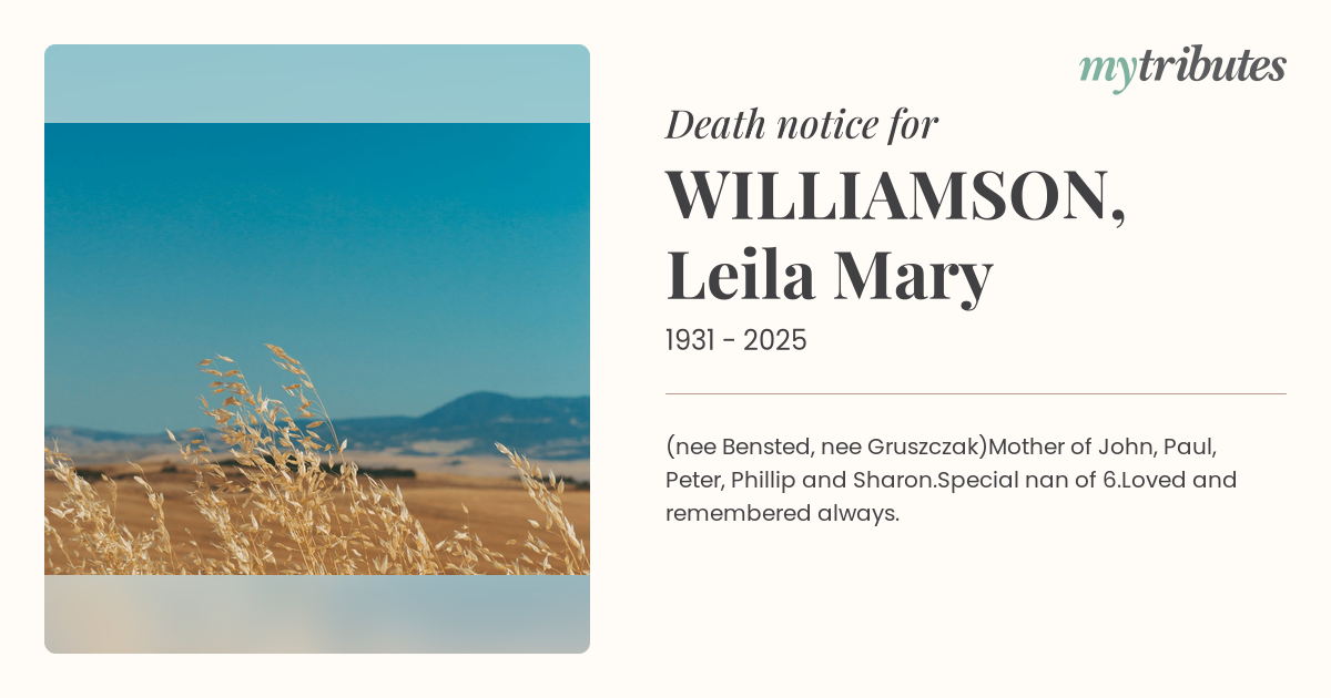 Mother of John, Paul, Peter, Phillip and Sharon.